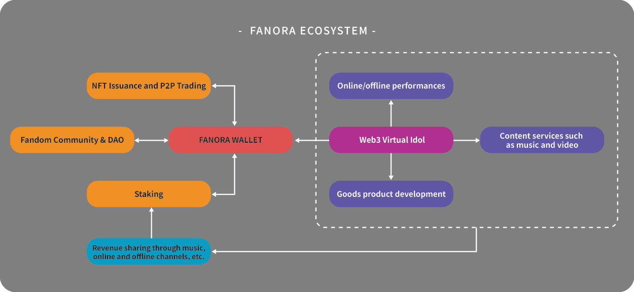 FANORA token launch / Global community building / Start of SNS meme challenges / Debut of the K-POP virtual idol RUBY